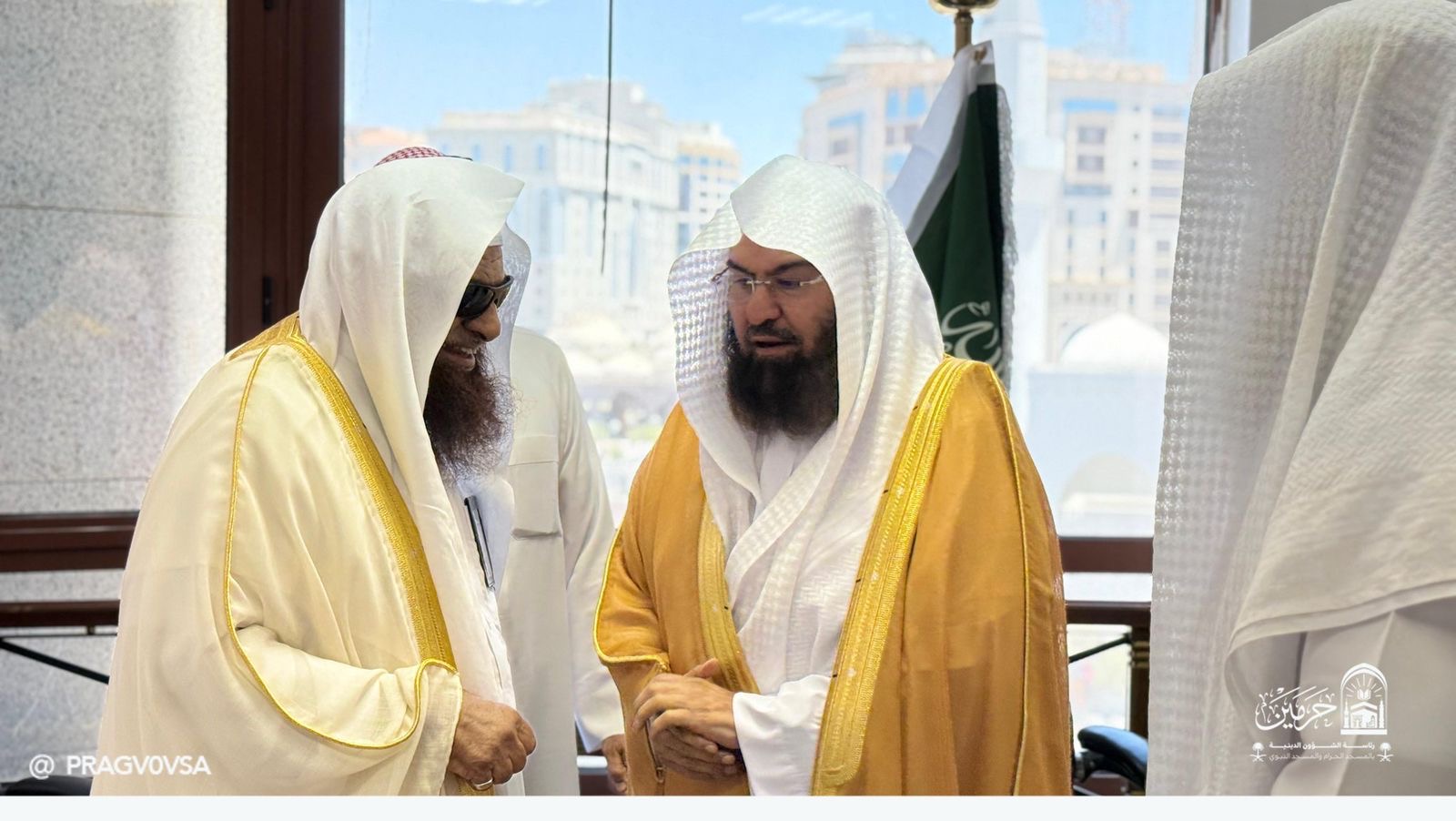 زار معالي رئيس الشؤون الدينية بالمسجد الحرام والمسجد النبوي، الشيخ أ.د عبدالرحمن بن عبدالعزيز السديس اليوم الخميس ٢٢/١/١٤٤٧ مفوض الإفتاء بمنطقة المدينة المنورة والمدرس بالمسجد النبوي، فضيلة الشيخ الدكتور صالح بن سعد السحيمي في مكتب فضيلته بفرع الرئاسة العامة للبحوث العلمية والإفتاء بالمدينة.