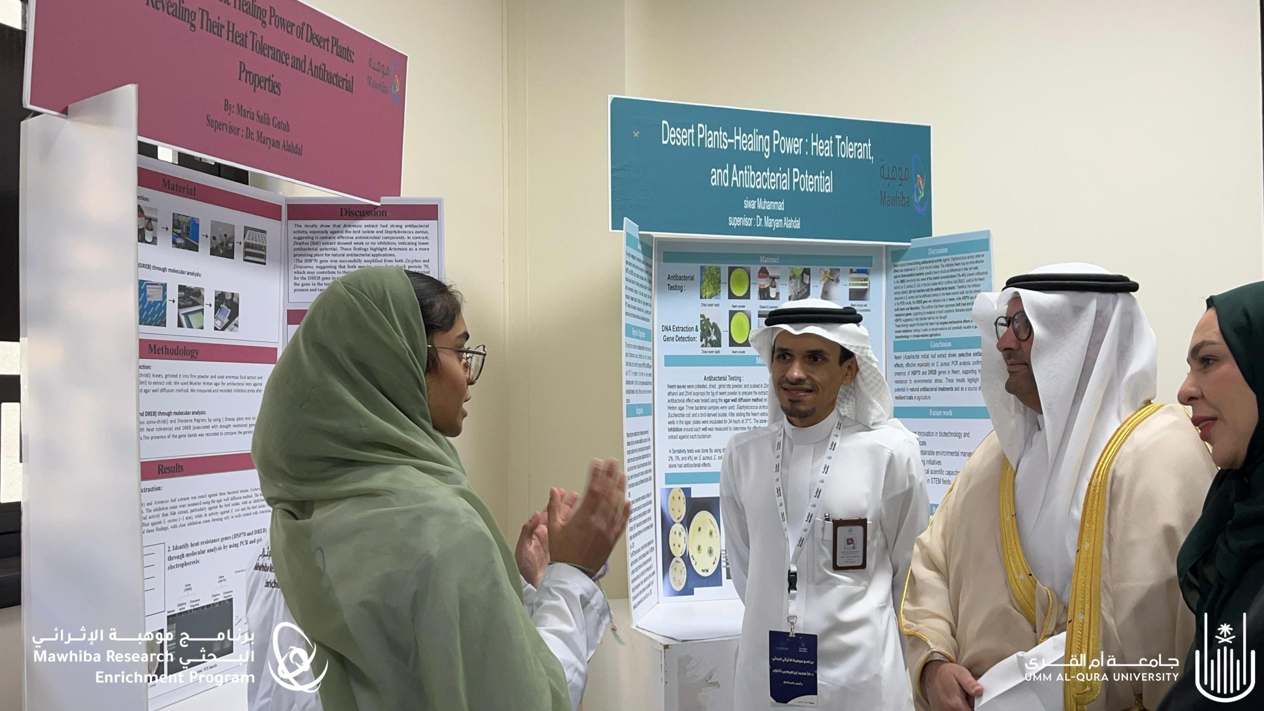 وشهد الحفل معرضًا علميًا لمشاريع الطالبات، خضعت فيه الملصقات للتحكيم الفوري من قبل لجنة علمية متخصصة قدمت تغذية راجعة ساهمت في رفع جودة المخرجات، كما تم إعلان المشاريع الفائزة في مسابقة أفضل ملصق علمي.