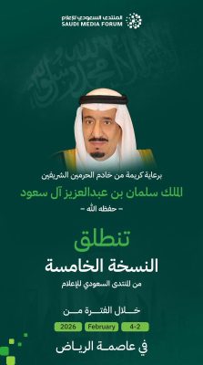 رفع الأستاذ محمد فهد الحارثي، رئيس هيئة الإذاعة والتلفزيون، أسمى آيات الشكر والعرفان لمقام خادم الحرمين الشريفين الملك سلمان بن عبدالعزيز آل سعود -أيّده الله-، على تفضّله بالرعاية الكريمة للمنتدى السعودي للإعلام في نسخته القادمة، والذي سينطلق بإذن الله في الثاني من فبراير المقبل، بالتزامن مع معرض مستقبل الإعلام، وبمشاركة أكثر من 250 شركة محلية وعالمية، وبحضور واسع من صنّاع القرار الإعلامي والشركات التقنية والابتكارية.