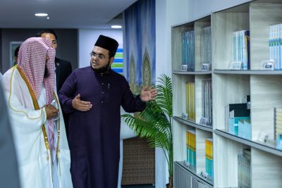 واطّلع فضيلته خلال الزيارة على مراحل طباعة المصحف الشريف وأساليب الإخراج والمراجعة الدقيقة والتقنيات الحديثة المستخدمة في خدمة كتاب الله تعالى مشيدًا بالعناية الكبيرة التي توليها المطبعة لطباعة المصاحف ونشرها على مستوى دولي بما يعكس حرص المؤسسات الإسلامية في ماليزيا على خدمة القرآن الكريم