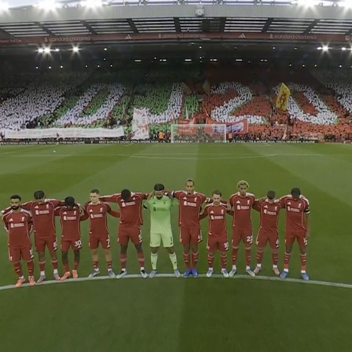 كما رفعت لافتة أخرى تحمل الرقم 20، وهو القميص الذي ارتداه جوتا خلال مسيرته مع ليفربول.