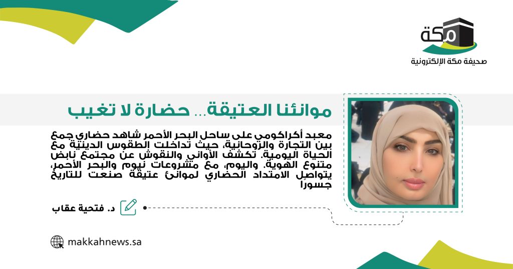 معبد أكراكومي وميناؤه لم يكونا مجرد أطلال صامتة، بل انعكاسًا لحياة نابضة جمعت بين القداسة والاقتصاد، بين الروح والتجارة. ففي كل عمود رخامي، وفي كل نقش محفور، وفي كل كسرة فخار، يتجلى حضور حضارة لا تغيب، تؤكد أن هذه الموانئ العتيقة على البحر الأحمر كانت أكثر من محطات عابرة؛ كانت جسورًا تربط الإنسان بالبحر، وتفتح للجزيرة أبوابًا نحو العالم.
