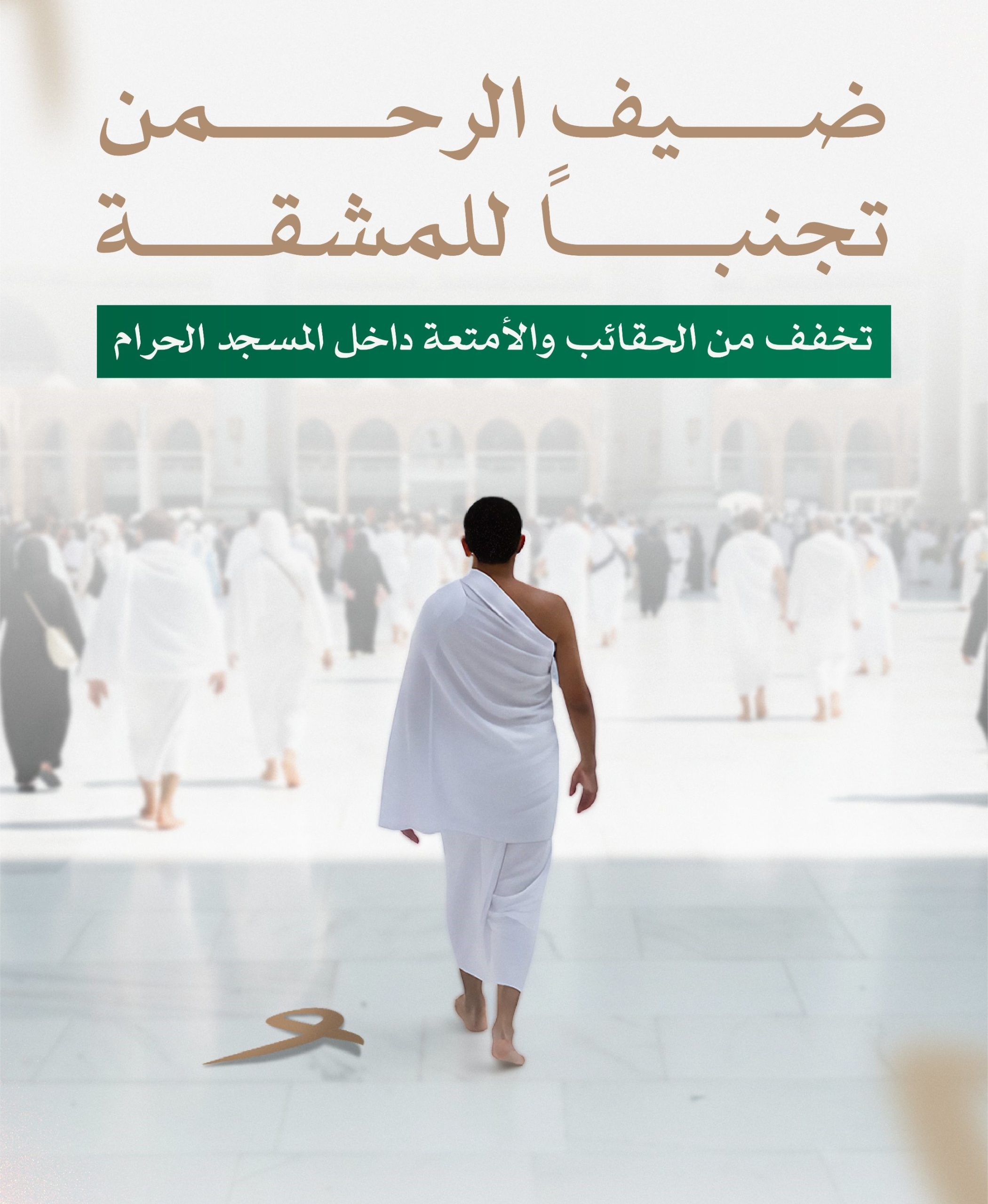 دعت وزارة الحج والعمرة ضيوف الرحمن إلى التخفف من الحقائب والأمتعة الزائدة خلال رحلتهم إلى الحرمين الشريفين، مؤكدة أن ذلك يسهم في التيسير على الحاج والمعتمر، ويعينه على التفرغ للعبادة بروحانية وطمأنينة.