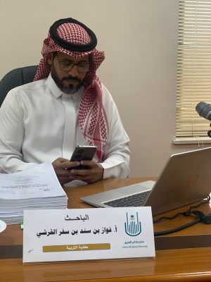 حيث جرت مناقشة هذه الرسالة صباح يوم (الأحد) 22/3/1447هـ الموافق 14/9/2025م بحضور اللجنة المشكلة بقرار مجلس كلية التربية في جلسته رقم (27) وتاريخ 8/11/1446 المكونة لمناقشة الرسالة العلمية المقدمة من الباحث “القرشي” واوصت بمنحه الدرجة العلمية.