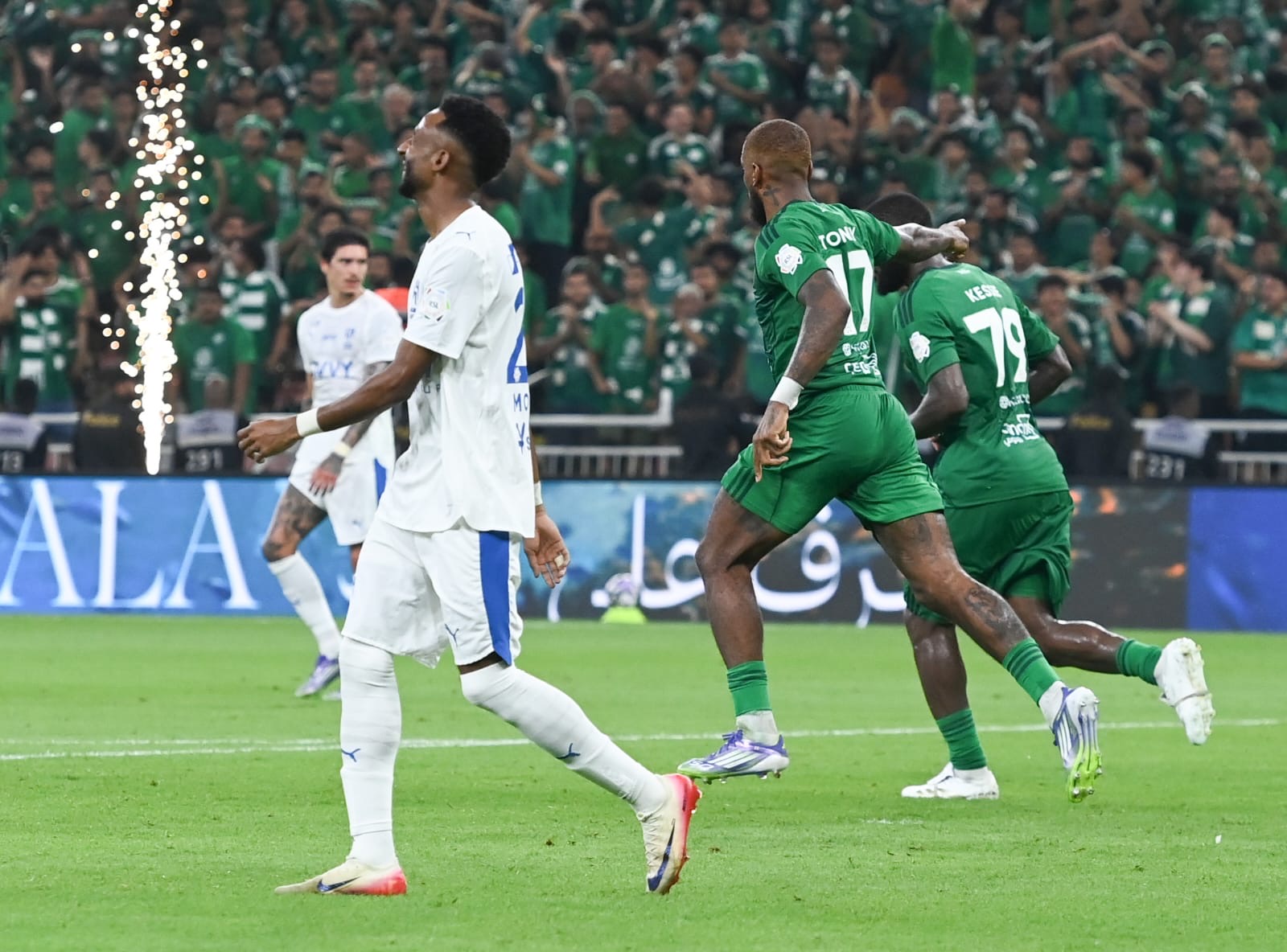 الهلال أنهى الشوط الأول متقدماً بثلاثية نظيفة جاءت عن طريق الفرنسي ثيو هيرنانديز الذي افتتح التسجيل في الدقيقة 12، قبل أن يضيف مالكوم ثنائية متتالية في الدقيقتين  24 و 41.