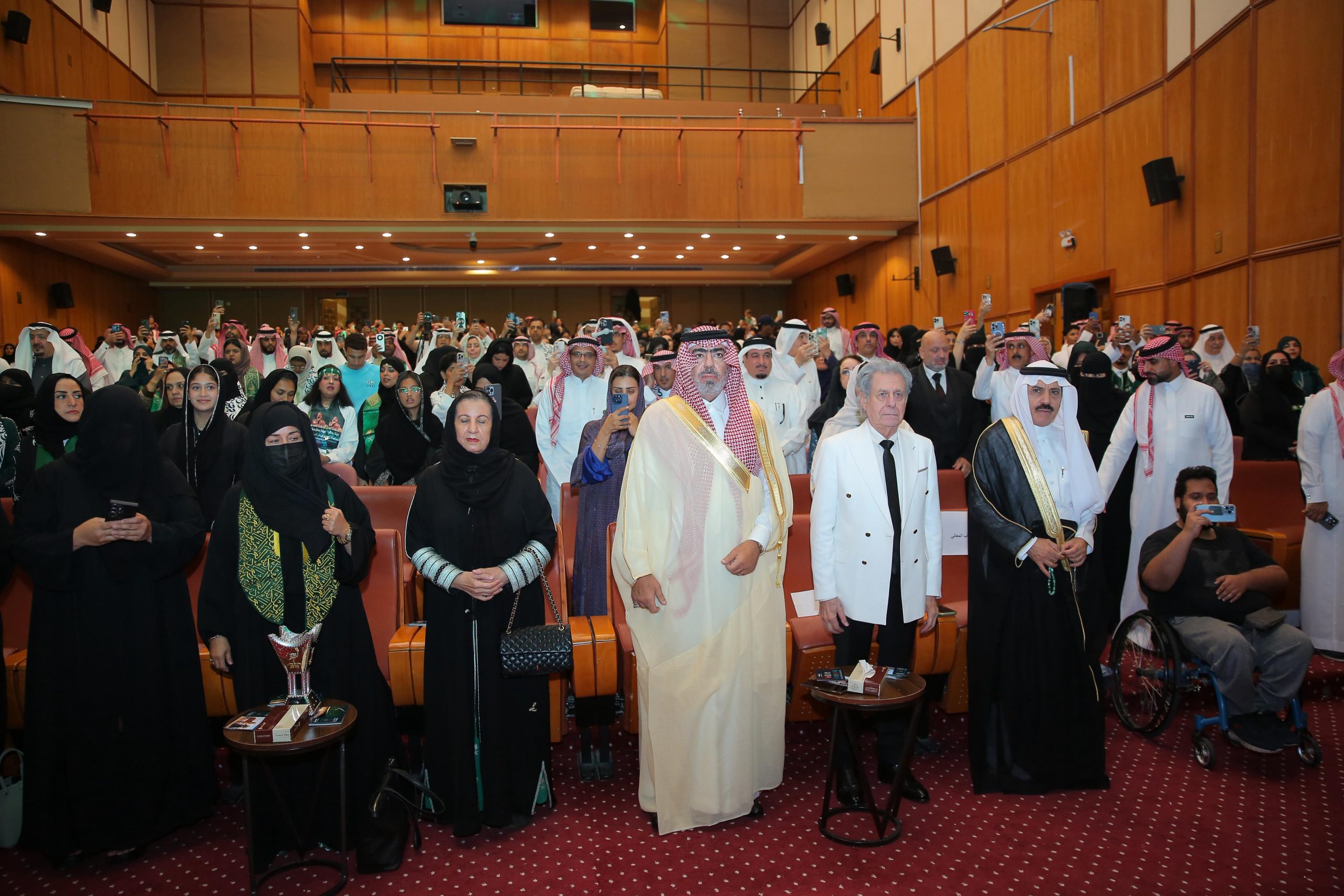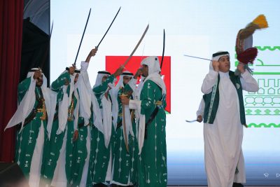 وشهد الحفل تقديم معزوفات موسيقية وغنائية، وكورال وطني لمجموعة من المواهب، إلى جانب العرضة السعودية التي تفاعل معها الحضور، كما عُرض فيلم بعنوان «وطن الخير» بمشاركة نخبة من الفنانين والمثقفين أعضاء الجمعية، قبل أن تختتم الفعاليات بعرض مسرحي حظي بتفاعل جماهيري كبير.