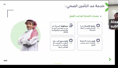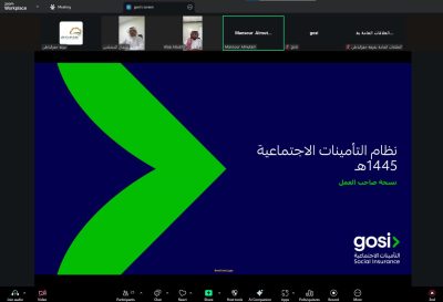 نظّمت غرفة حفرالباطن ظهر اليوم الأربعاء 2025/10/8 ورشة عمل افتراضية بالتعاون مع المؤسسة العامة للتأمينات الاجتماعية، بعنوان “أبرز ملامح نظام التأمينات الاجتماعية لعام 1445هـ”، قدّمها الأستاذ علاء الصبحي، قائد تنمية في المؤسسة.