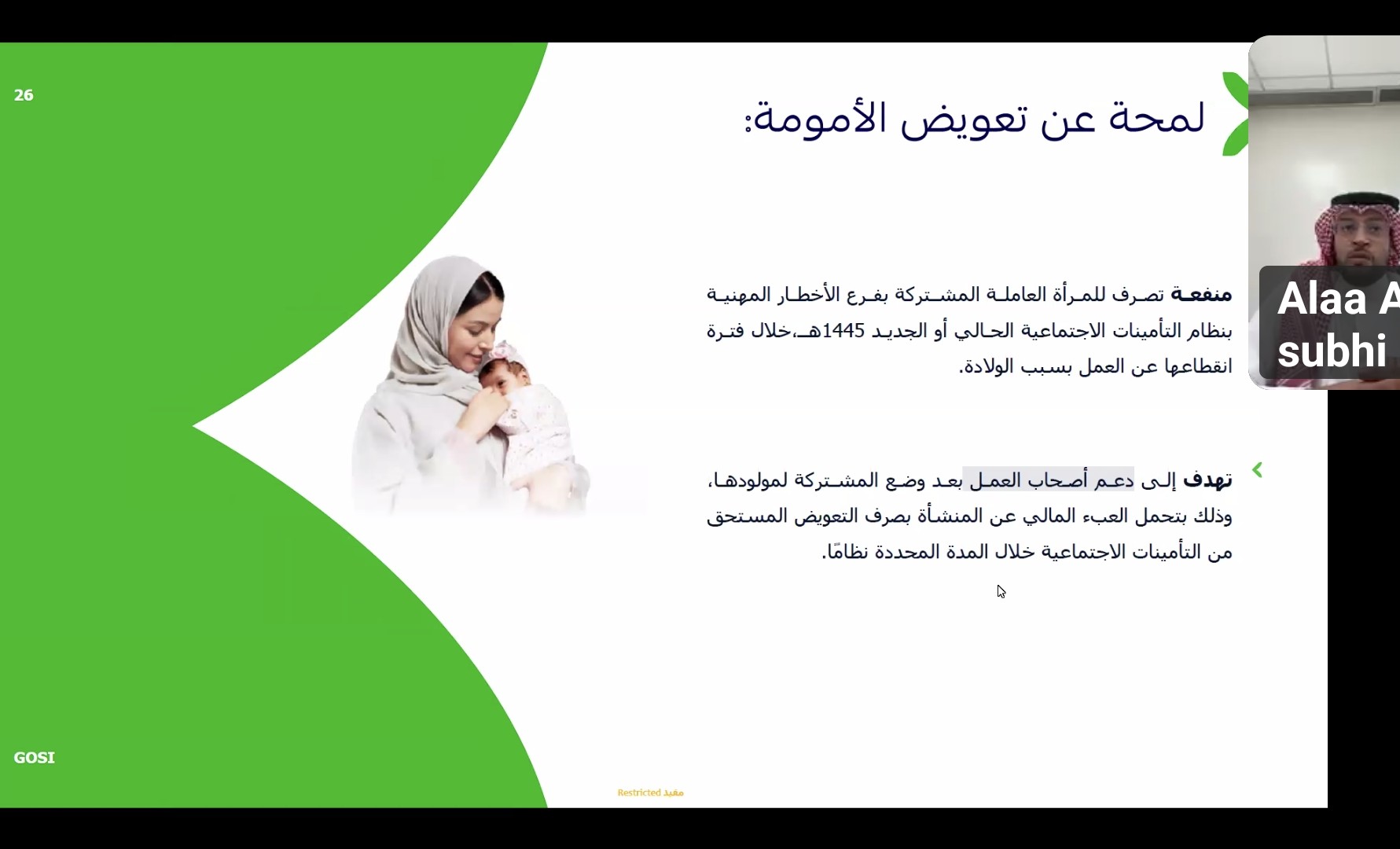 كما تناول اللقاء نظام تعويض الأمومة ودوره في دعم المرأة العاملة، إلى جانب الحديث عن تمديد التغطية التأمينية للخدمات الصحية، وذلك ضمن جهود المؤسسة لتوسيع نطاق الحماية الاجتماعية للمستفيدين.