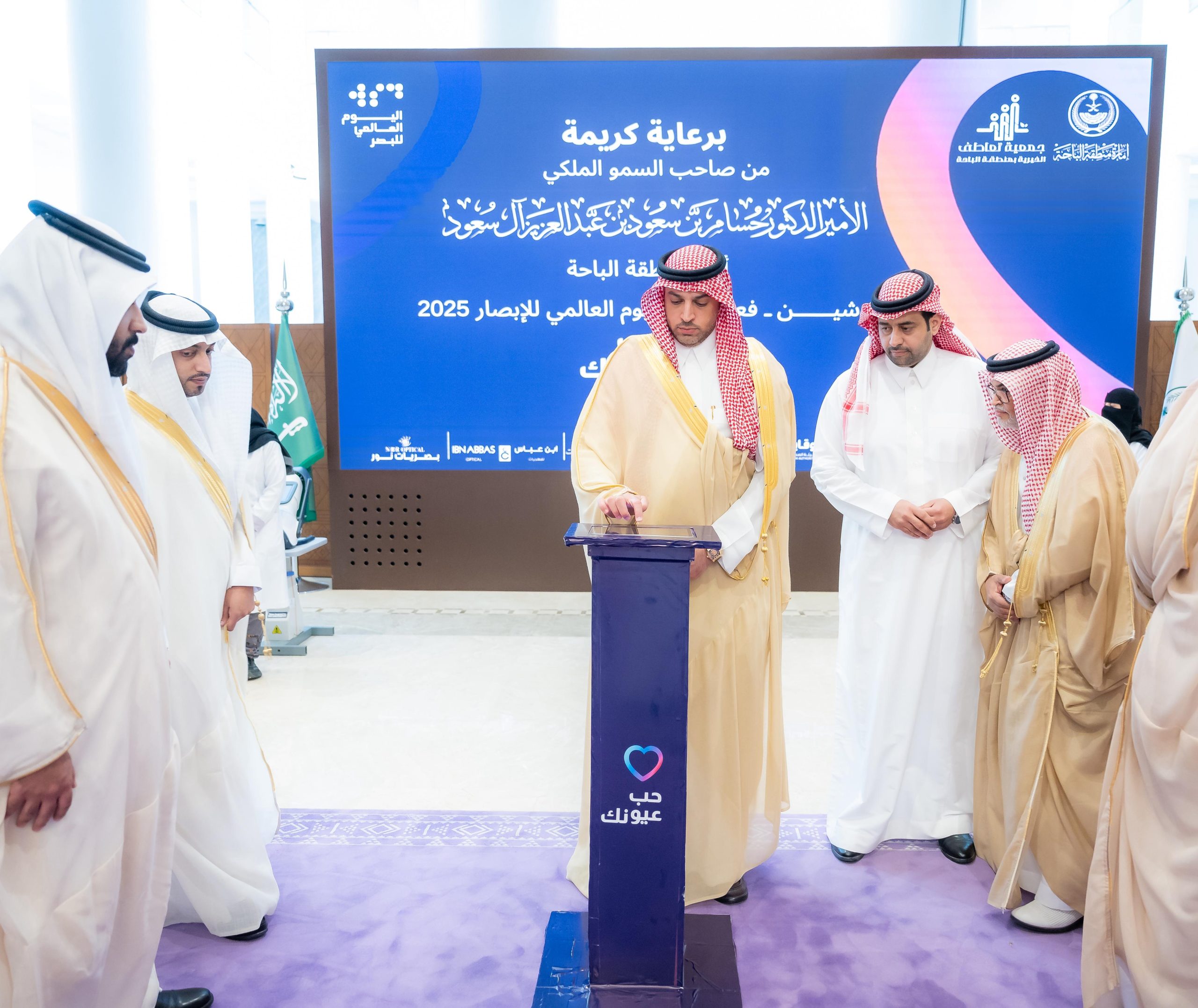 الباحة – تحت رعاية صاحب السمو الملكي الأمير الدكتور حسام بن سعود بن عبدالعزيز أمير منطقة الباحة، حضر وكيل الإمارة للشؤون الأمنية أحمد بن عبدالعزيز السديري فعالية اليوم العالمي للبصر تحت شعار “حب عيونك” والتي نضمتها جمعية “تعاطف” الخيرية بمنطقة الباحة في بهو الإمارة.