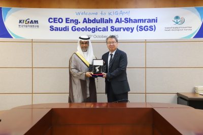 عقد الرئيس التنفيذي لهيئة المساحة الجيولوجية السعودية ، المهندس عبدالله الشمراني، مؤخرا ، اجتماعًا مع رئيس المعهد الكوري لعلوم الأرض والموارد المعدنية.