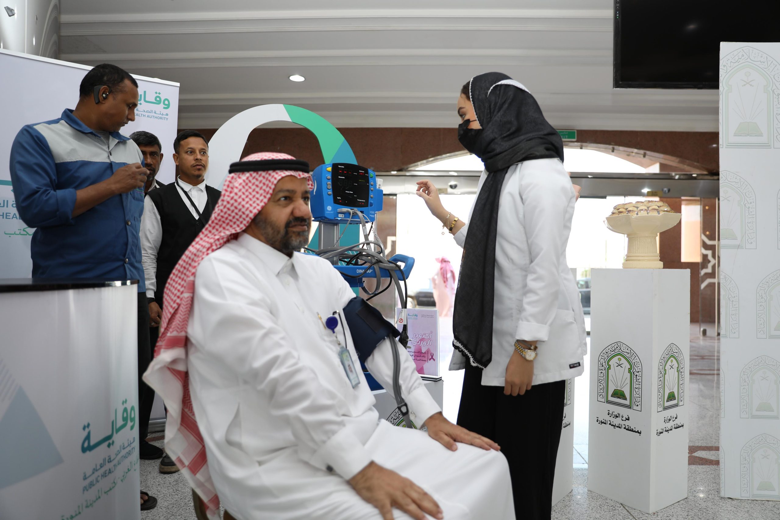 نفذ فرع وزارة الشؤون الإسلامية والدعوة والإرشاد بمنطقة المدينة المنورة، ممثلاً بإدارة الموارد البشرية، وبالتعاون مع هيئة الصحة العامة ممثلة بالقطاع الغربي، وجمعية طيبه الخيرية، أول أمس الاثنين الخامس من شهر جمادى الأولى لعام 1447هـ، حملة صحية شاملة للوقاية من الأمراض المزمنة والموسمية في بهو الفرع، بمشاركة عدد من المختصين في مجالات التوعية الصحية والوقاية من الأمراض.