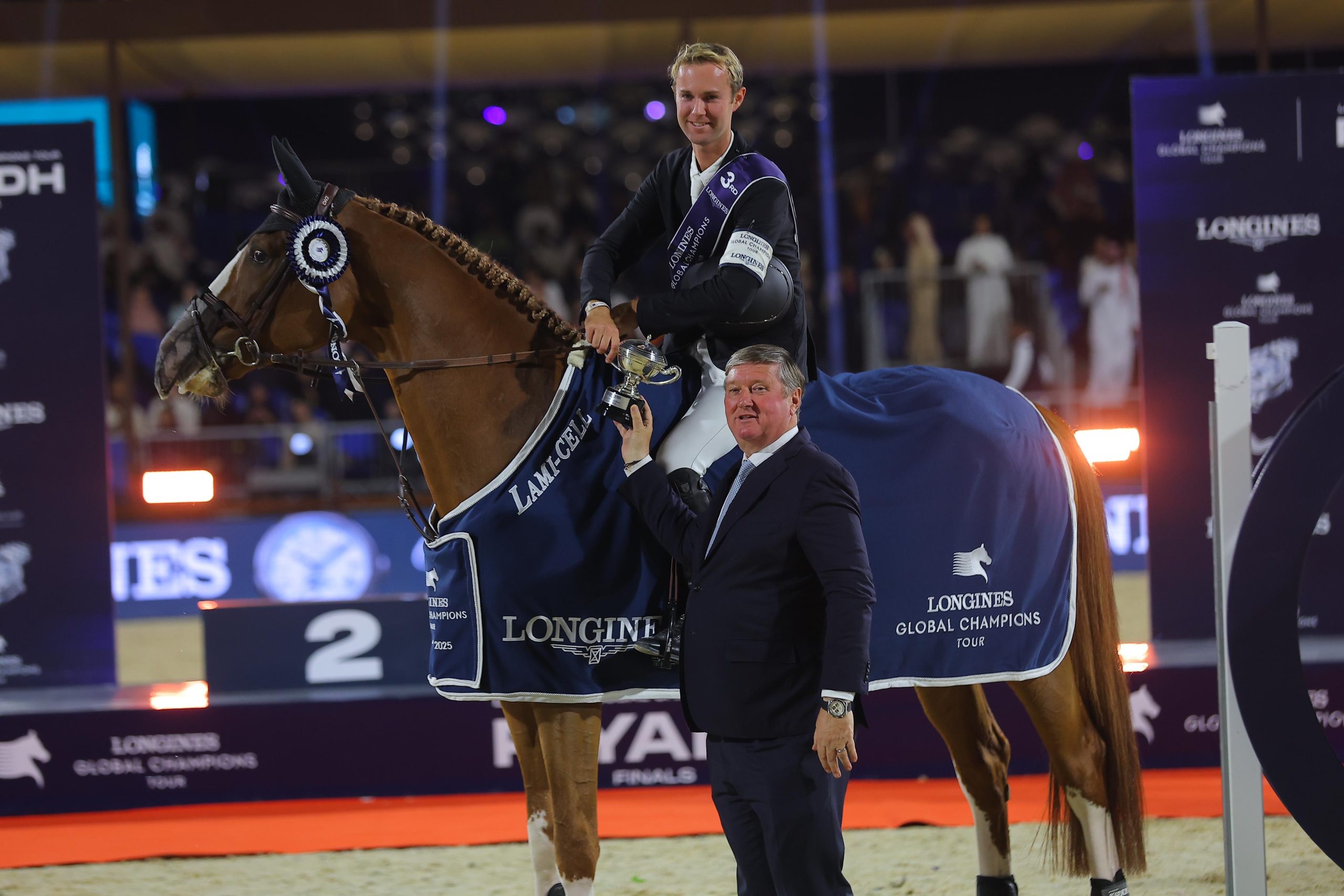 وأضاف “نتقدم بجزيل الشكر لجميع شركائنا الذين أسهموا في إنجاح هذهالجولة، كان التزامه وشغفه أساسًا لنمو رياضتنا، نتقدم بجزيل الشكر للاتحاد السعودي للفروسية واللجنة المنظمة المحلية بالرياض على دعمهما وكرم ضيافتهما المتميزين هذا الأسبوع في النهائيات، يتطلب تنظيم فعاليات بهذا المستوى جهدًا جماعيًا رائعًا خلف الكواليس، ومعًا نواصل الارتقاء بمعايير قفز الحواجز عالميًا“.