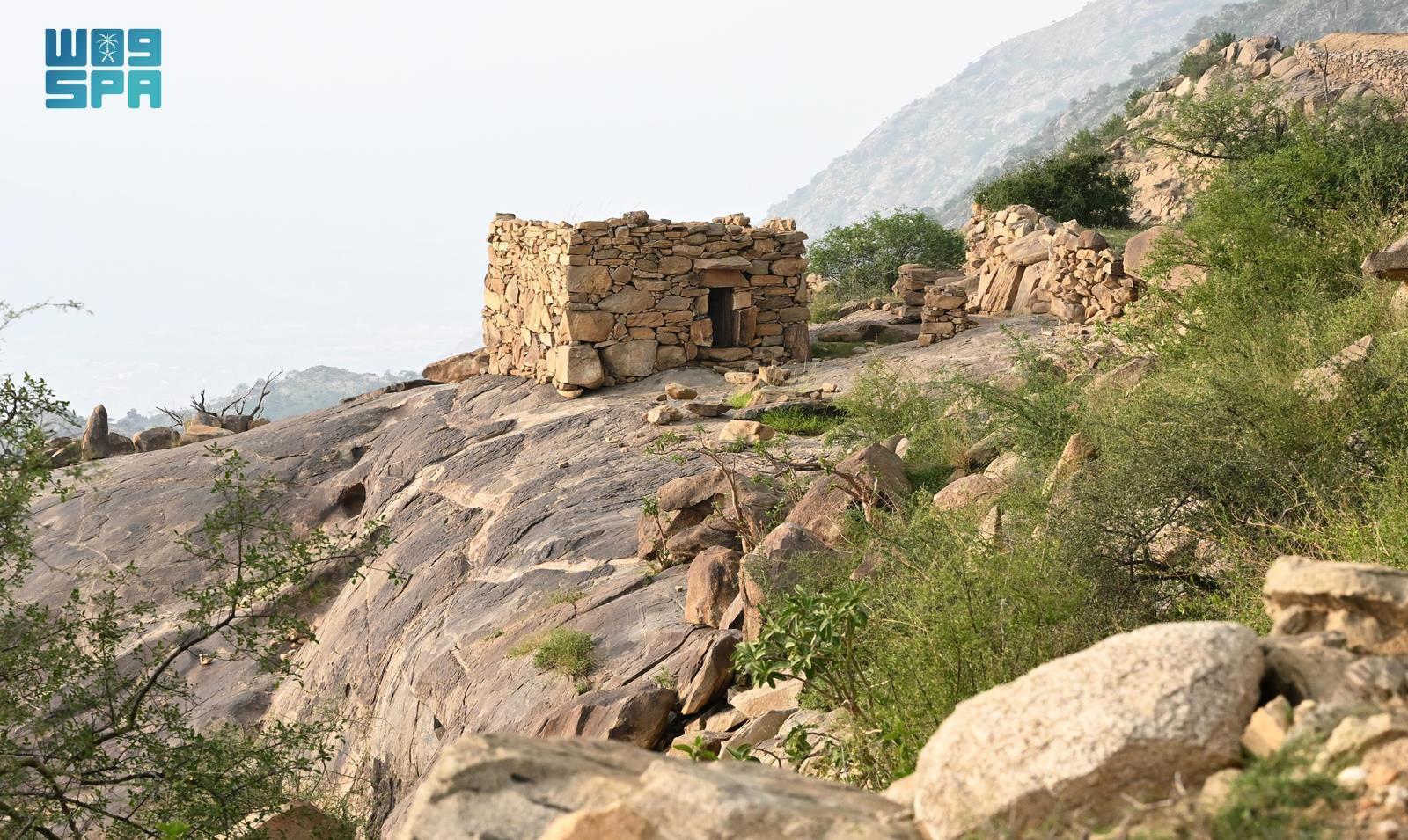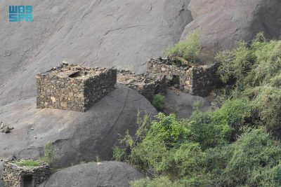 أما في تهامة عسير، وتحديدًا في جبل «أحد ثربان» غرب محافظة المجاردة، فتأخذ مدافن الحبوب شكلًا مختلفًا يناسب طبيعة المكان، فهناك تنتشر المباني الحجرية المعروفة محليًّا باسم “المُغلَّقة”، وهي بيوت حجرية صغيرة مشيدة فوق الصخور النارية الصلبة، تُستخدم لحفظ محاصيل الذرة والشعير والسمسم بعد الحصاد. وتتميز هذه “المُغلقة” بباب صغير محكم الإغلاق يمنع تسرب الرطوبة، ولا تحتوي عادة على نوافذ، لضمان بقاء الحبوب في بيئة جافة ومحفوظة لفترات طويلة، وهو ما جعلها تؤدي دور الصوامع الطبيعية منذ مئات السنين.
