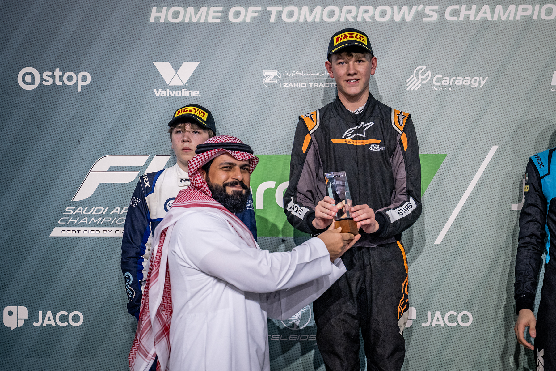 وفي ختام المنافسات، توّج المهندس منصور المقبل، الرئيسالتنفيذي المكلف للاتحاد السعودي للسيارات والدراجات النارية، والرئيس التنفيذي لشركة رياضة المحركات السعودية، البريطانيلويس ويريل، سائق فريق كاراجي، بجائزة المركز الأول، بعدماأنهى السباق متقدمًا بفارق ثانية واحدة، و617 جزءًا من الثانيةعن صاحب المركز الثاني البريطاني كيت بيلوفسكي، سائق فريقبيكس، كما توّج الإماراتي آدم الأزهري، سائق فريق فالفولين، بجائزة المركز الثالث بفارق 4 ثوان و257 جزءًا من الثانية عنصاحب المركز الأول، وجاء البلجيكي تيبو رامايكرز سائق فريقزاهد في المركز الرابع، ونجح السعودي عبدالله كامل، سائق فريقأستوب، من تقديم أداءً قوي مكنه من حصد المركز الخامس.