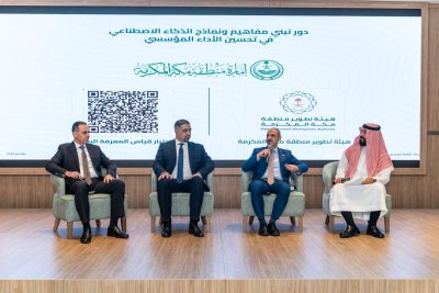 وتضمّنت فعاليات اليوم الأول تحت عنوان “دور تبنّي مفاهيم ونماذج الذكاء الاصطناعي في تحسين الأداء المؤسسي”، التعريف بالملتقى وأهدافه ، كما شهدت انطلاق الورشة الأولى تحت عنوان “تطوير النماذج القيادية العالمية وتوظيف الذكاء الاصطناعي في رحلة التميّز المؤسسي”، التي قدّمها ماهر العجوري المدير التنفيذي لشركة KPMG