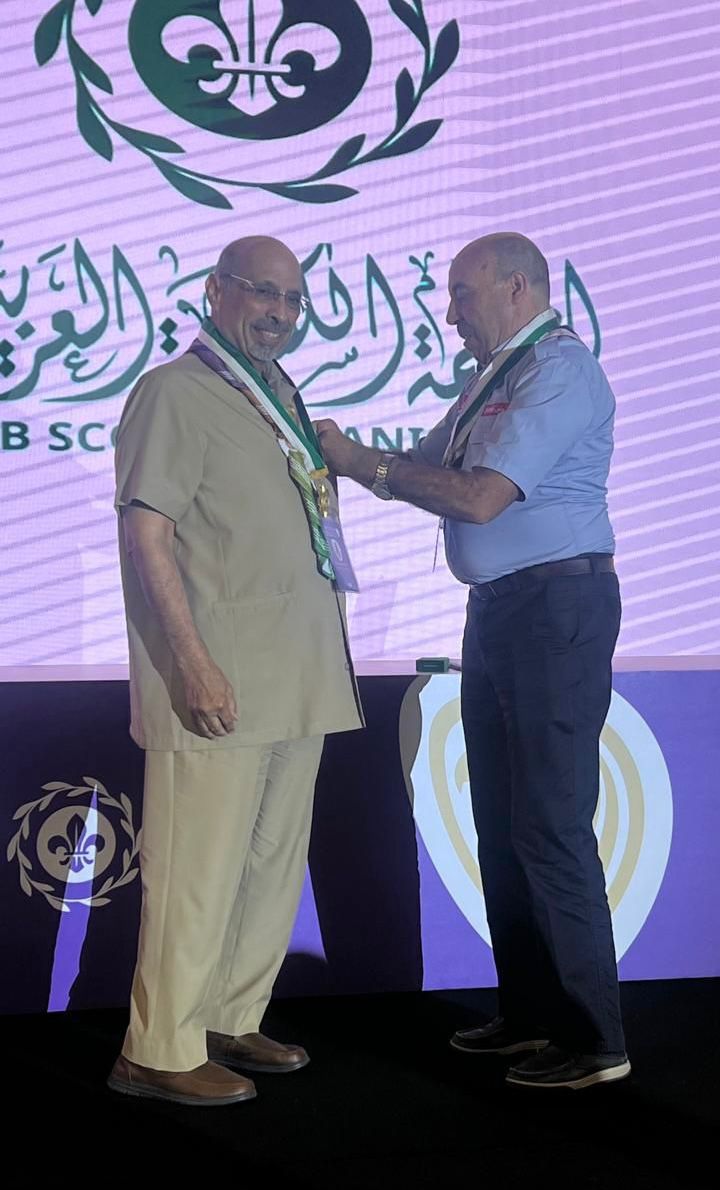 وجاء هذا التكريم تقديرًا لعطائه الطويل وجهوده المؤثرة في خدمة الحركة الكشفية، وتطوير برامجها على المستويين العربي والدولي، إلى جانب مساهماته البارزة في دعم المبادرات الشبابية وتأهيل القيادات الكشفية.