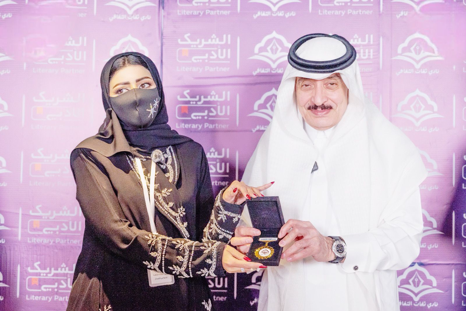 المدينة المنورة – كرّم المستشار الإعلامي محمد التونسي ورئيس نادي ثقات الثقافي الدكتور عبدالعزيز العروي، الدكتورة أمل حمدان رئيسة اللجنة الثقافية بالنادي بالوسام الذهبي، تقديرًا لجهودها النوعية في صناعة مشهد ثقافي احترافي داخل المدينة المنورة بحضور نخبة من المثقفين والإعلاميين
