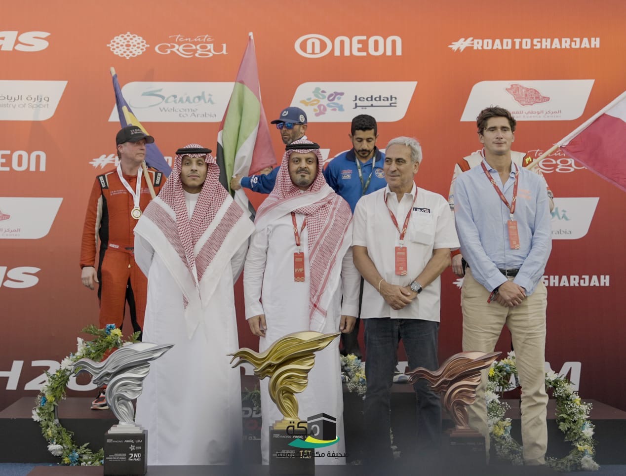وعقب إسدال الستار على مجريات السباق وانتهاء المنافسات انطلقت مراسم تتويج الفائزين، حيث عزف السلام الملكي وكرّم صاحب السمو الملكي الأمير سعود بن مشعل بن عبدالعزيز، الفائزين وسط أجواء احتفالية مُبهرة، وموسيقى حماسية منحت الحدث طابعًا عالميًا، فيما أضاءت عروض الألعاب النارية سماء جدة احتفالًا بنجاح هذه البطولة.