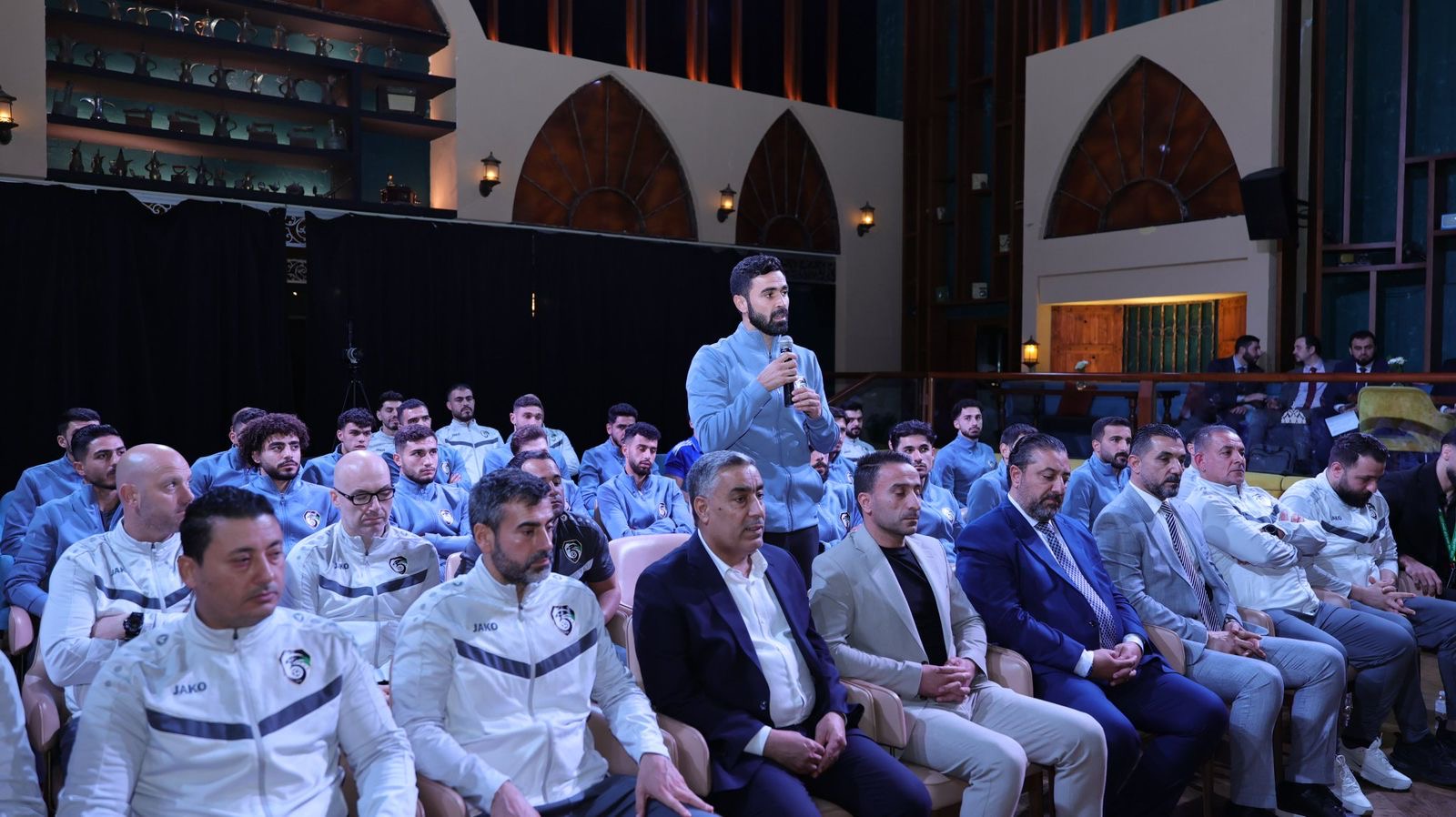 وحضر الاجتماع وزير الخارجية والمغتربين السيد أسعد الشيباني، حيث تبادل الرئيس مع لاعبي المنتخب والكادر الفني الحديث حول مشاركة سوريا في البطولة، مشيدًا بروح المنتخب واستعداداته، ومؤكدًا دعم الدولة لظهور مشرّف يمثل الكرة السورية في المحفل العربي.