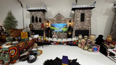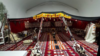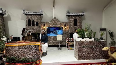 ويبرز في الجناح المسار التخيلي الذي يربط بين الحاضر والماضي حيث يرافق الزوار جملان بلونين مختلفين، يجسد كل منهما جانبًا من تاريخ المنطقة وتراثها، ليعيش الزائر تجربة غنية وممتعة.