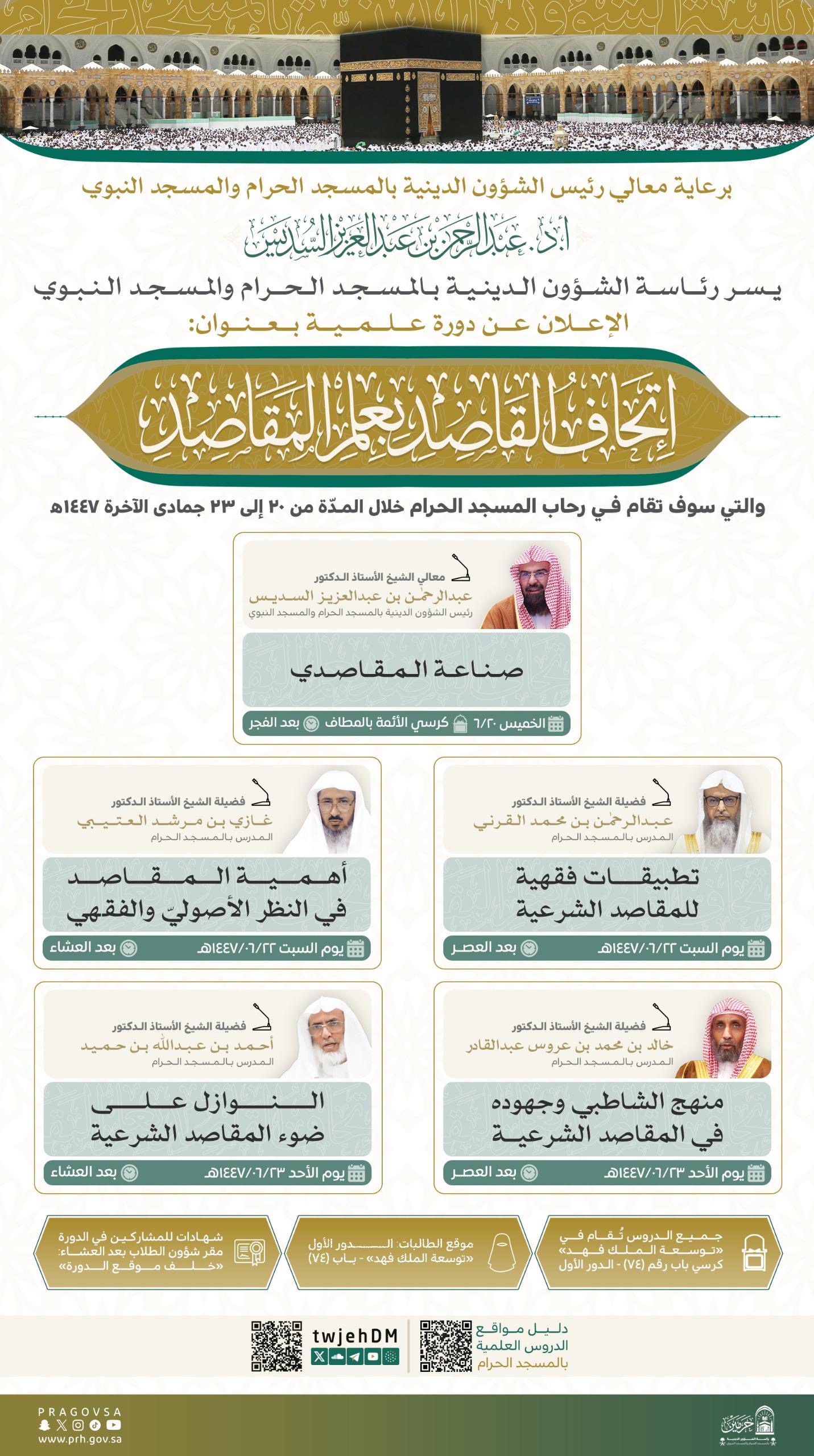رئاسة الشؤون الدينية تطلق دورة علمية بعنوان “إتحاف القاصد بعلم المقاصد” في رحاب المسجد الحرام