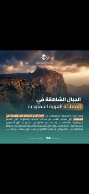 بمناسبة اليوم العالمي للجبال 2025م ، أكدت هيئة المساحة الجيولوجية السعودية ، على أهمية الجبال الشاهقة كمعالم جيولوجية طبيعية ، وتعكس سجلات حية لتاريخ كوكبنا، وأحداث وتطورات جيولوجية عبر العصور المختلفة.