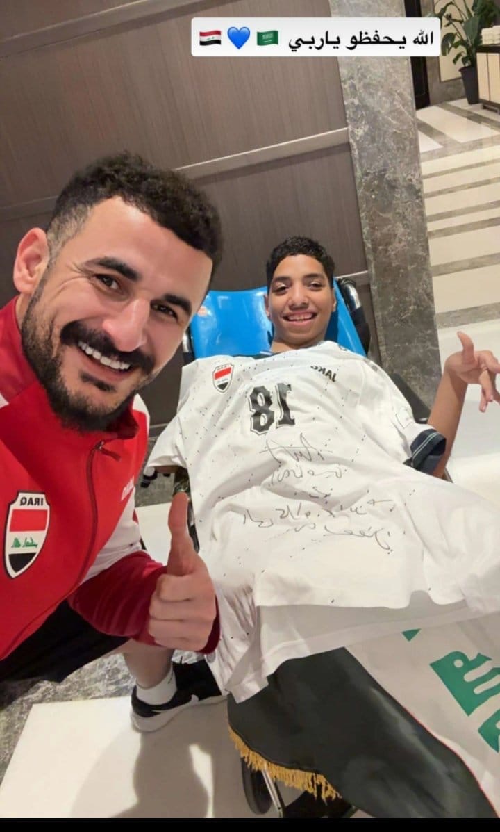 خطف النجم العراقي أيمن حسين الأضواء خارج الملعب، بعدما حقق أمنية أحد المشجعين السعوديين من ذوي الهمم، في لفتة إنسانية نالت إعجاب الجماهير.