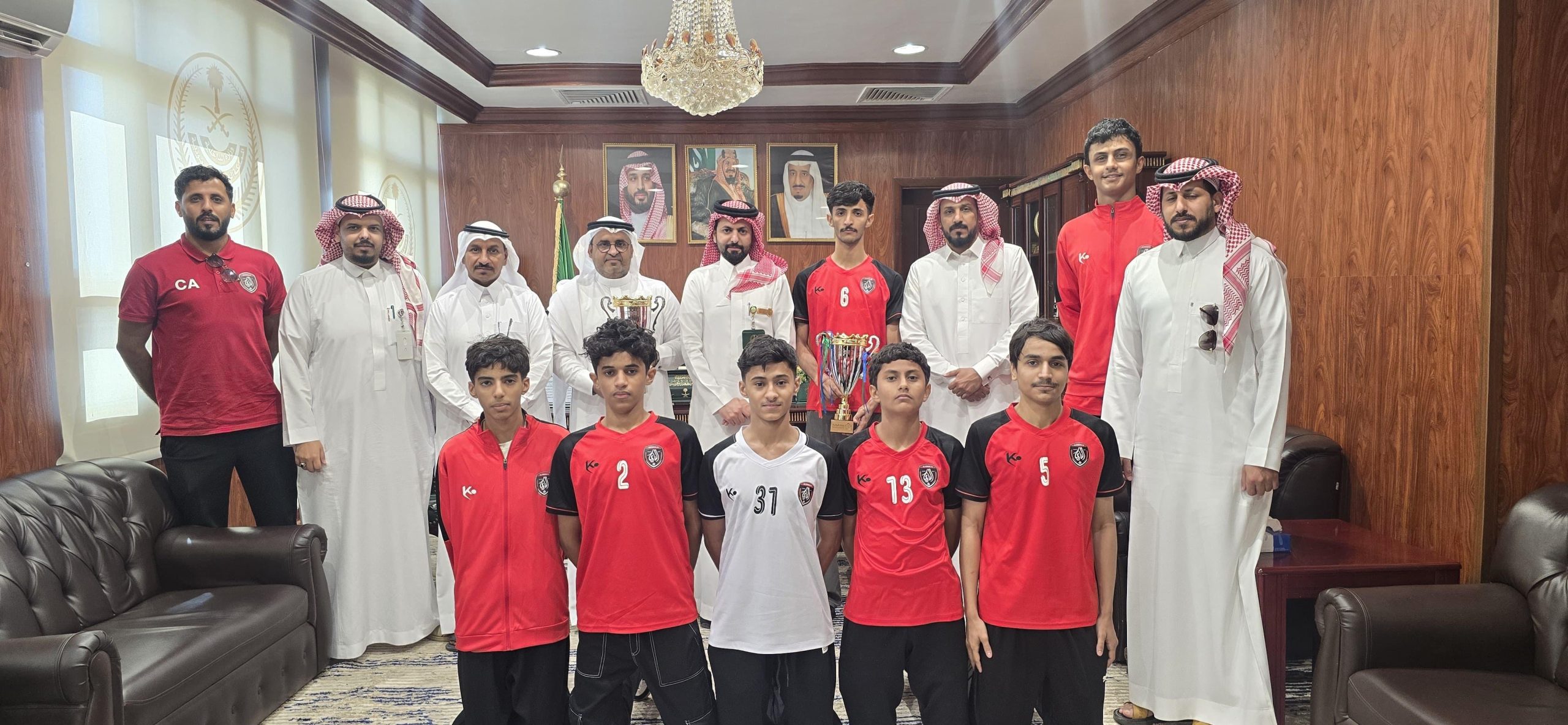 المجاردة : استقبل محافظ المجاردة ناصر بن مفرح العسيري بمكتبه اليوم رئيس مجلس إدارة نادي الفاروق الرياضي صديق بيه الشهري وأعضاء مجلس الادارة والجهازين الفني والإداري لفريق الكرة الطائرة بمناسبة تحقيق النادي بطولة منطقة عسير للكرة الطائرة لفئتي الشباب والناشئين .