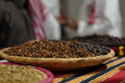 ويُقدَّم البن لزوار الجناح مع الترحيبة المحلية الشهيرة لأهالي المنطقة: