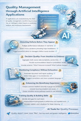 لم تعد الجودة في المؤسسات مجرد “قسم” يراجع الأخطاء بعد وقوعها، ولا مجرد “نماذج” تعبّأ عند التدقيق، بل أصبحت فلسفة تشغيل يومي تقاس بالأثر قبل الأرقام، وبثقة المستفيد قبل تقارير الإنجاز. ومع موجة الذكاء الاصطناعي التي اقتحمت كل شيء، تزداد فرص إدارة الجودة اتساعًا وعمقًا: من جودة تلاحق العيوب .. إلى جودة تتنبأ بها، وتمنعها، وتتعلم منها. في هذا المشهد الجديد، يصبح الذكاء الاصطناعي شريكًا في صنع “النسخة الأفضل” من المؤسسة: نسخة أسرع استجابة، أعلى اتساقًا، أقدر على كشف الفجوات مبكرًا، وأصدق في قراءة تجربة العميل والموظف معًا.