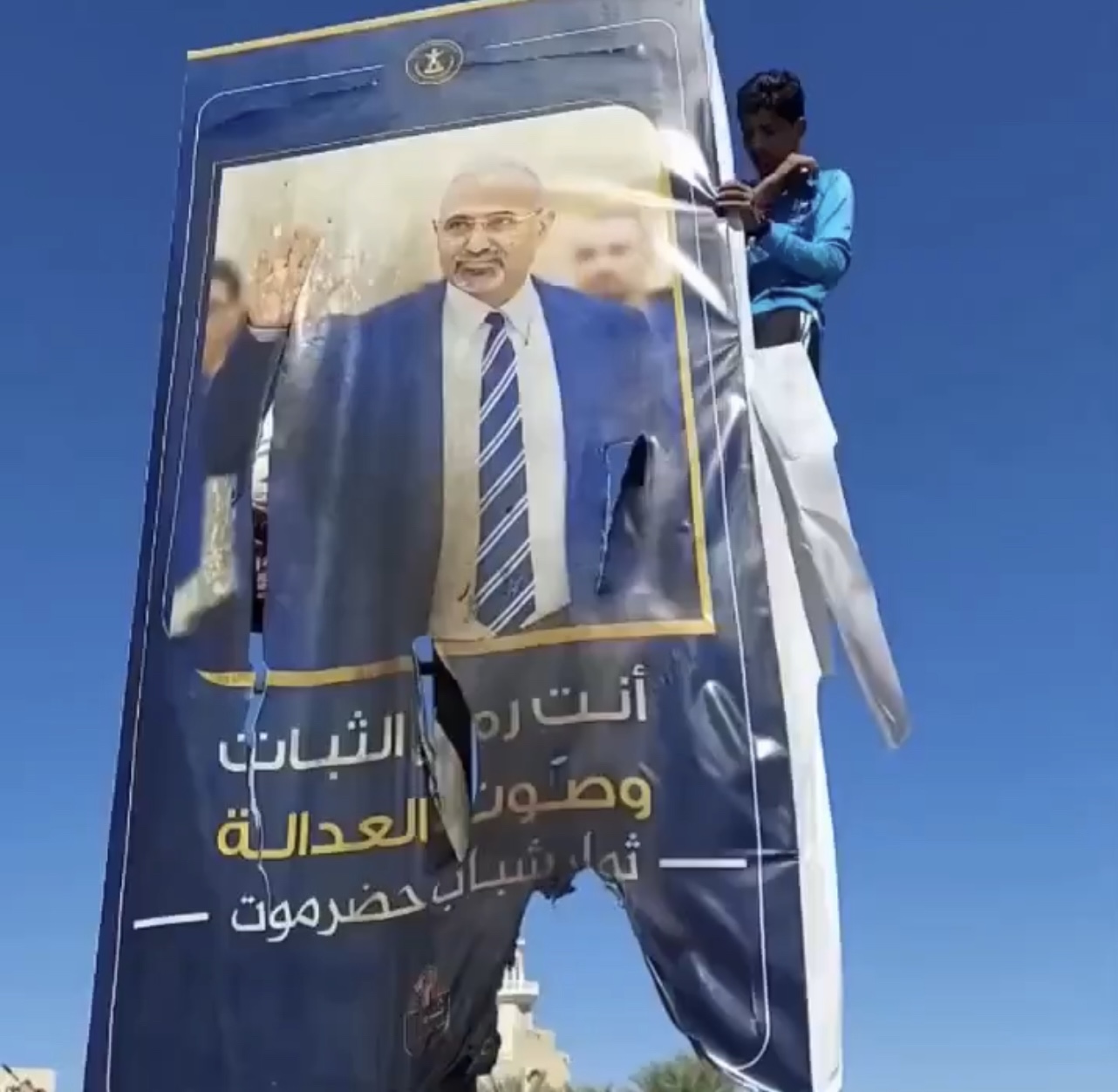 وفي اليمن، أفادت مصادر محلية بأن لوحات تحمل صور رئيس المجلس الانتقالي الجنوبي عيدروس الزبيدي تعرّضت للتمزيق في عدد من المناطق، بالتزامن مع تصاعد الانتقادات الشعبية لتحركاته الأخيرة وهروبه خارج البلاد. واعتبر مراقبون أن هذه المشاهد تعكس حالة غضب متنامية تجاه ما يراه الشارع اليمني إخفاقًا سياسيًا وأمنيًا أسهم في تعميق الانقسام وزعزعة الاستقرار.