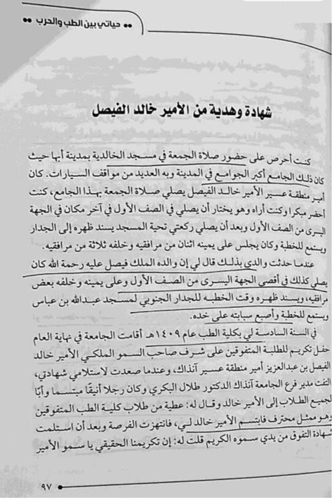 ويقول: إنه أشرف على علاج الشيخ عبدالله الجابر الصباح أكبر العائلة الصباحية الحاكمة في الكويت، وأنه التقى وزير خارجية الكويت (يومذاك) وأمير الكويت فيما بعد (يرحمه الله) الشيخ صباح الأحمد الصباح وهو يزور مشفى الهدا.