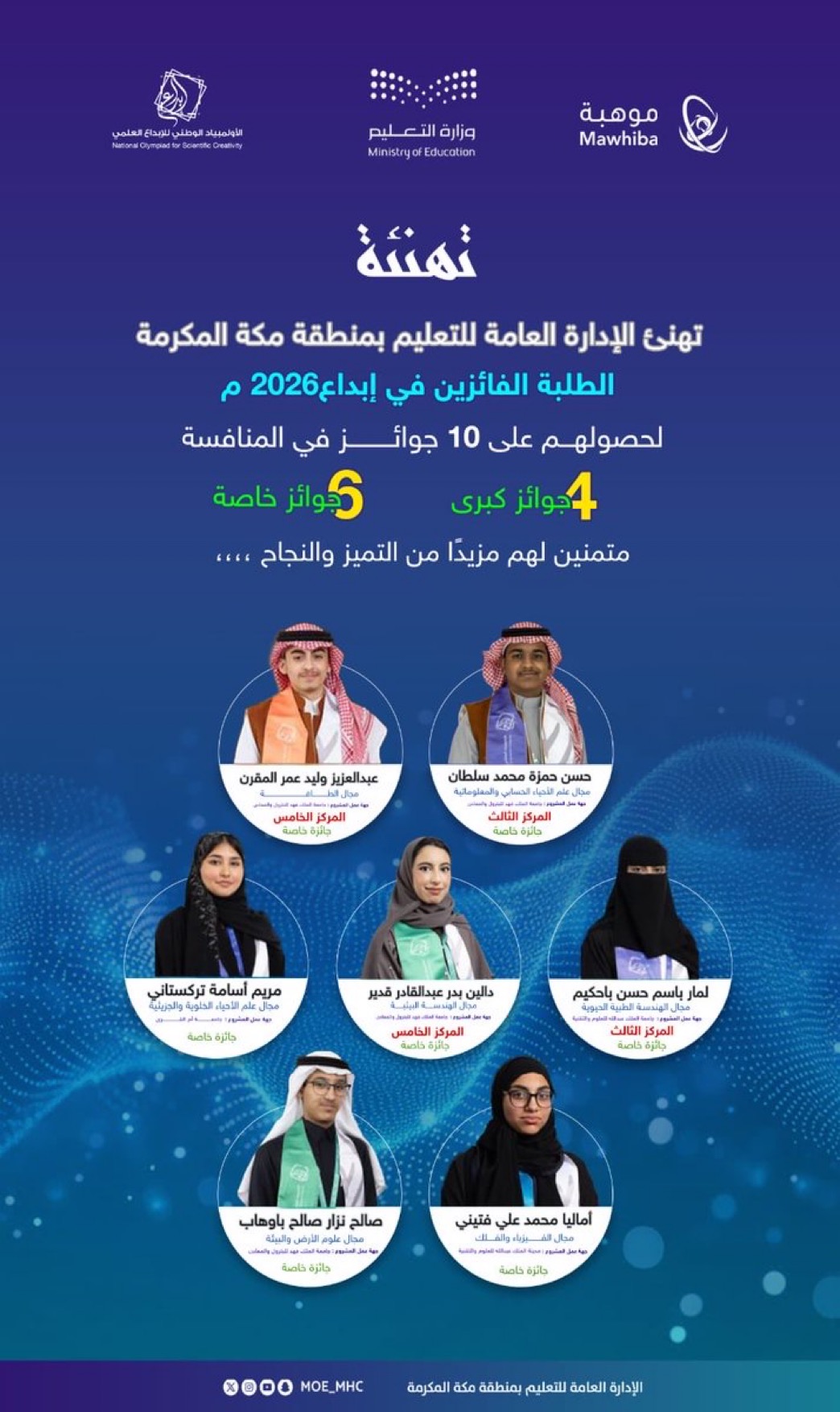 الرئيسية/تعليم مكة يهنئ الفائزين في «إبداع 2026» ويؤكد أن الإنجاز ثمرة دعم القيادة للتعليم/IMG_5885 IMG_5885