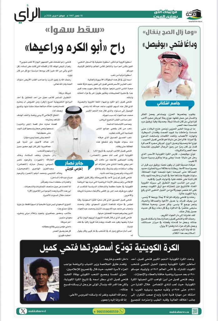 فتحي كميل (أبو الكره وراعيها) المتعة الكروية والبصرية، الذي قال عنه السهم الملتهب ماجد عبدالله إنه يتمنى الوصول إلى مستواه، والذي قال عنه النجم الكبير محمد عبدالجواد إنه سبب شهرته.
