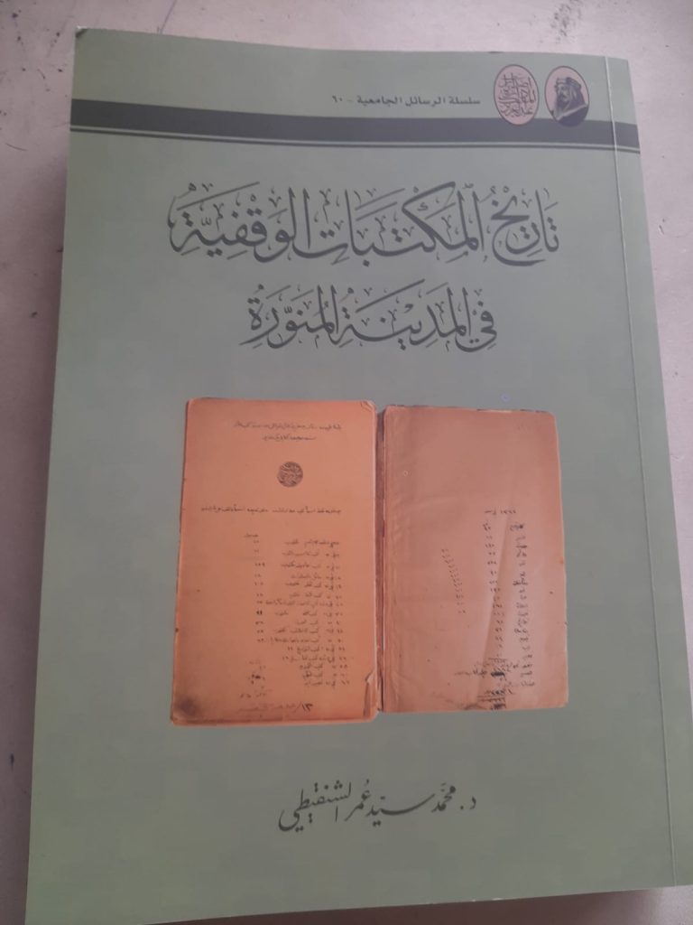 أهداني أخي العزيز الدكتور محمد سيد عمر الشنقيطي نسخة من كتابه القيّم «تاريخ المكتبات الوقفية في المدينة المنورة»، وهو رسالة علمية نال بها درجة الدكتوراه بمرتبة الشرف الأولى من جامعة القاهرة، كلية الآداب، قسم المكتبات وتقنية المعلومات عام 2015م. وقد قامت دارة الملك عبدالعزيز بنشره انطلاقًا من رسالتها في العناية بتاريخ الحركة العلمية في المملكة العربية السعودية، وتوثيق ما لقيته المكتبات بأنواعها المختلفة من عناية واهتمام ودعم، أسهمت ـ بحمد الله وتوفيقه ـ في نهضة علمية شاملة.