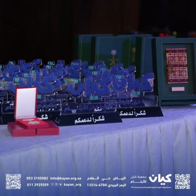 وشهد الحفل تكريم الداعمين والمشاركين ضمن فقرة «عطاء ممتد»، كما تسلمت سموها هدية تذكارية عبارة عن “مجسم الباب النجدي” من إحدى المستفيدات. ودشنت سموها الكريم البودكاست، وإطلاق سفراء كيان ليكونوا صوت الجمعية المؤثر في المجتمع.