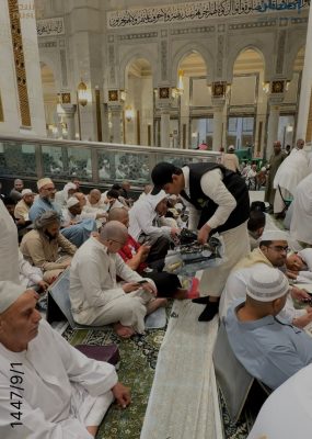 وتُقدِّم الإدارة يوميًا (5000) وجبة إفطار صائم لزوار بيت الله الحرام طوال شهر رمضان المبارك بمجموع أكثر 150الف وجبه ، بمشاركة (500) متطوع ومتطوعة من منسوبي التعليم، وبالتعاون مع جمعية الصديق التعليمية، في مشهدٍ يجسّد روح التكافل والتلاحم، ويعكس الدور المجتمعي الرائد للتعليم في خدمة ضيوف الرحمن.