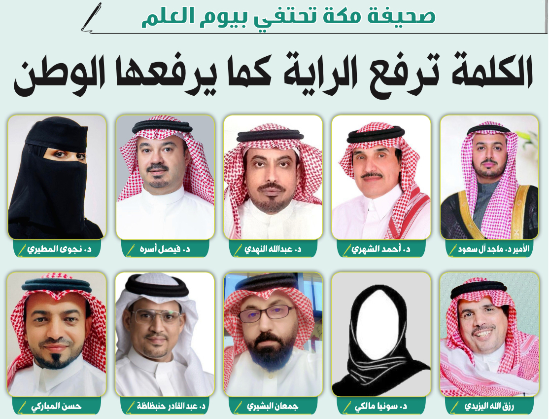 وفي هذا السياق، حرصت صحيفة مكة الإلكترونية على الاحتفاء بهذه المناسبة الوطنية عبر نخبة من المقالات الفكرية والثقافية التي كتبها عدد من الأكاديميين والكتّاب، في خطوة تعكس الدور الإعلامي والثقافي الذي تضطلع به الصحيفة في ترسيخ الوعي الوطني وتعزيز مكانة الرموز الوطنية في الوجدان العام. وقد تناولت المقالات أبعاد العلم السعودي التاريخية والدينية والوطنية، مؤكدة أنه ليس مجرد رمزٍ مادي، بل اختصار لمسيرة دولة وقيم أمة وهوية وطن.