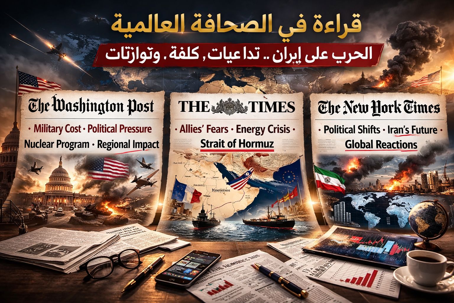 أما نيويورك تايمز، فقد ركزت في تغطياتها على الأبعاد السياسية العامة للحرب، خاصة ما يتعلق بتوازنات القوى في المنطقة، وتحولات المواقف الدولية، إضافة إلى متابعة انعكاسات الحرب على الداخل الإيراني، في ظل استمرار الضغوط العسكرية والاقتصادية.