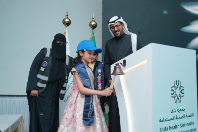 تلا ذلك السلام الملكي بمصاحبة عدد من أطفال التوحد والسرطان والغسيل الكلوي والذين عبروا عن حبهم للوطن بإنشاد السلام الملكي، وبعد ذلك ألقى الأستاذ / محمد بن عبد الرحمن الراجحي رئيس مجلس إدارة جمعية شفا للتنمية الصحية المستدامة كلمة ضافية شرح فيها توجه مجلس إدارة الجمعية خلال الفترة القادمة وشكر المجهودات التي بذلت من المجلس السابق والإدارات السابقة والشركاء والداعمين وأوضح خارطة الطريق المستقبلية للجمعية. كما وقع سعادته عقداً مع مكتب المهندس خالد الفقيه لبدء العمل على تصميم مشروع المدينة الطبية في منطقة عسفان التي تبرعت بها أوقاف عبد الرحمن بن عبد العزيز الراجحي وتشمل مستشفى سرطان للأطفال بسعة 50 سرير مع إمكانية التوسع الى 150 سرير بالإضافة الى حديقة لكبار السن ومسجد يتسع لعدد 1000 مصلى وعدد 8 مباني لإسكان الفريق الطبي والعاملين بالمستشفى وبرج فندقي ومول تجاري بالإضافة الى محطة بنزين وديزل بجميع ملحقاتها ومحلاتها التجارية.
