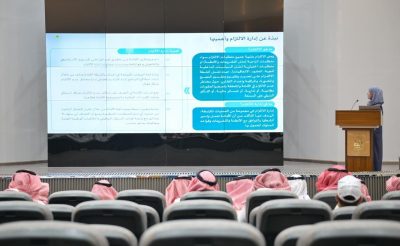 كما استعرضت مدير قسم تخطيط وتطوير الالتزام بإدارة المشاريع والتحول المؤسسي بوزارة البلديات والإسكان فاطمة بنت عبد اللطيف محور الالتزام متناولة نظام إدارة الالتزام وتطوير قواعد البيانات وتقييم مخاطر عدم الالتزام وقياسها ومتابعتها وآليات الاستجابة للحالات ورفع التقارير