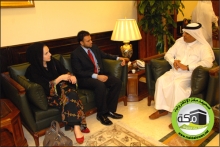 استقبل معالي مدير جامعة أم القرى الدكتور بكري بن معتوق عساس بمكتبه بالمدينة الجامعية بالعابدية مبعوث الولايات المتحدة الأمريكية في منظمة المؤتمر الإسلامي السفير رشاد حسين ونائبة قنصل عام الولايات المتحدة الأمريكية بجدة السيدة ياسمين جداوي والمستشارة التعليمية السيدة حنين كمال .