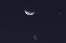 بمشيئة الله تعالى تشهد سماء المملكة عقب غروب شمس اليوم الجمعة 6 ربيع الثاني الموافق 11 مارس حسب تقويم ام القرى وقوع القمر أعلى نجوم الثريا .