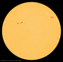 اعلنت الجمعية الفلكية بجدة ان الشمس تشهد حاليا نشاط ملحوظا في عدد البقع الشمسية التي تعبر على سطح الشمس والذي بلغ حتى صباح اليوم الثلاثاء 29 مارس عدد (8) مجموعات شمسية ورصد اثنتان منها يصدر عنها نشاط قوي.