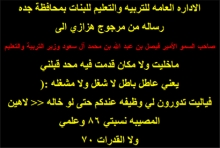 قام هكر عاطل يلقب (مرجوج هزازي)باختراق موقع الاداره العامه للتربيه والتعليم للبنات بجده مخاطبا وزير التربيه والتعليم بان يبحث له وظيفه في