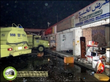 تمكنت خمس فرق دفاع مدني متنوعة الاختصاص بقيادة العقيد / خلف بن جازي المطرفي مدير إدارة العاصمة المقدسة المكلف والعقيد/ سالم المطرفي مدير شعبة العمليات من السيطرة على حادث حريق نشب في محل تجاري لبيع الخردوات تقدر ابعاده بـ(15×30)م بسوق شعبي يقع ببحره المجاهدين حيث ورد البلاغ لغرفة العمليات عند الدقيقه (21:10) من مساء يوم الاحد الموافق 2 – 8 – 1432هـ و قد تمكنت فرق الاطفاء من السيطرة على الحريق بالمحل المحترق والحيلوله دون انتشاره الى المحلات الاخرى في السوق الشعبي المقدره باكثر من سبعون محلاً تجارياً ولم ينجم عن الحادث اي اصابات في الارواح ولله الحمد وقد اوضح مدير التحقيق والناطق الاعلامي المقدم/ علي المنتشري انه لازال التحقيق جاري لمعرفة اسباب الحادث وحجم الخسائر المادية .