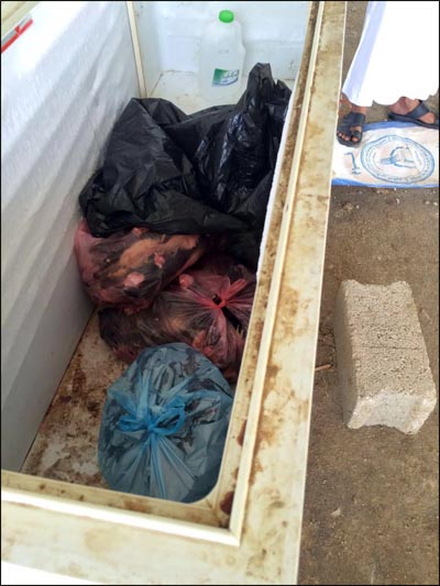 من جانبه قال مدير ادارة الخدمات ببلدية الشرائع الاستاذ متعب بن منصور الحكمي إنه تم ضبط كمية كبيره من جلود الحيوانات المخزنة بطريقة سيئة وقدرت كميتها بالمئات ، ومصادرة (3) فريزرات كبيرة تحتوي على كروش ومقادم ، وتم التحفظ على الموقع وحجز سيارة من نوع ونيت ، بالإضافة إلى وجود أشخاص من العاملين بالموقع المخالفين وغير الملتزمين بالنظافة الشخصية ولا يحملون شهادات صحية .