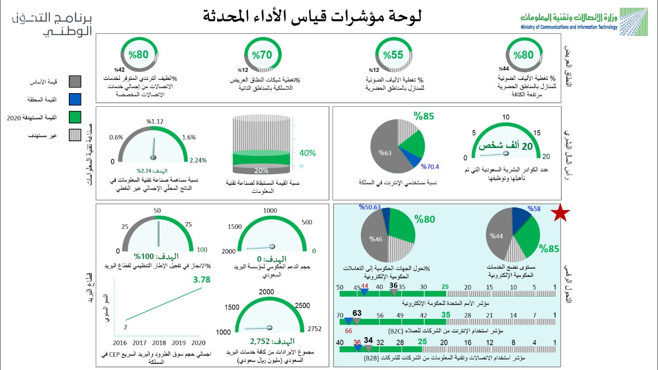 يذكر أن الوزارة أنهت تحديث الخطط التفصيلية لجميع مبادراتها التحولية (على مستوى مشاريع كل مبادرة وأنشطة كل مشروع) حتى عام 2020م، وتم رفعها لمركز الإنجاز والتدخل السريع. كما استكملت الوزارة بيانات بطاقات الأداء لمبادرات القطاع، وزود المركز الوطني لقياس أداء الأجهزة العامة بنسخة من هذه البطاقات.