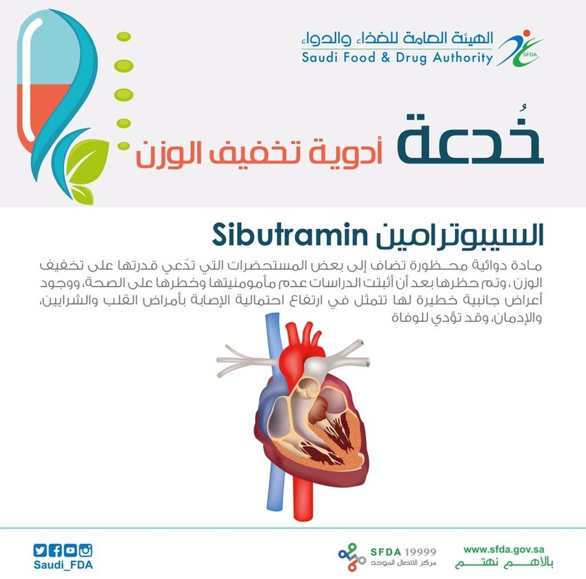 وأوضحت “الهيئة” في بيان لها، أن مفتشيها رصدوا مستحضر (MAGRIM SUPER DIET)، الذي يسوق من قبل باعة متجولين ومواقع انترنت ومواقع للتواصل الاجتماعي، على أنه مستحضر طبيعي وفعّال للتخسيس وإنقاص الوزن، في حين أظهرت تحاليل مختبرات “الهيئة” أن هذا الادعاء مضلل وليس له أي أساس من الصحة، إذ ثبت غش المستحضر بمادة (Sibutramine HCL)، وهي مادة دوائية محظورة، لعدم ضمان مأمومنيتها وخطرها على الصحة، ووجود أعراض جانبية خطيرة لها تتمثل في ارتفاع احتمال الإصابة بأمراض القلب والشرايين.
