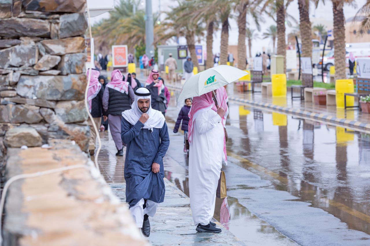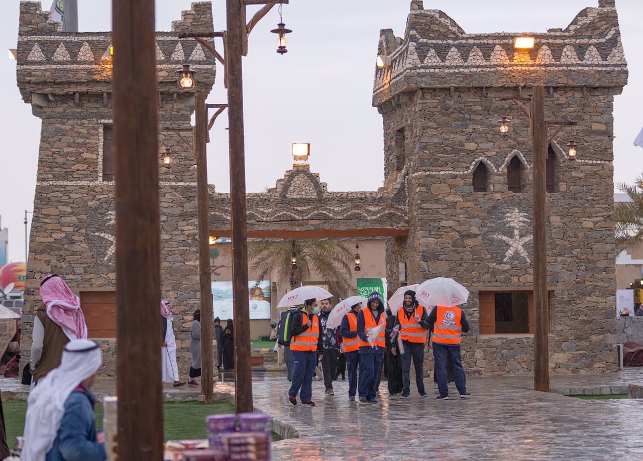 عاش زوار قرية الباحة التراثية المشاركة بالمهرجان الوطني للتراث والثقافة الجنادرية 31 أجواءها الحقيقية مع هطول الأمطار التي شهدتها الرياض أمس .